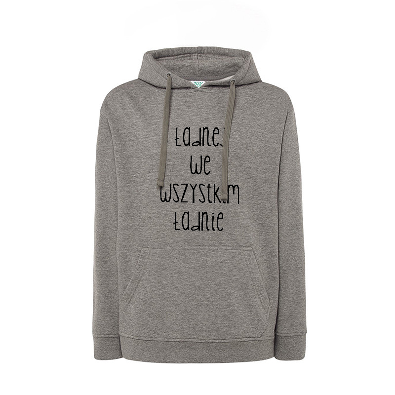 Damska bluza z kapturem z nadrukiem " Ładnej we wszystkim ładnie ".