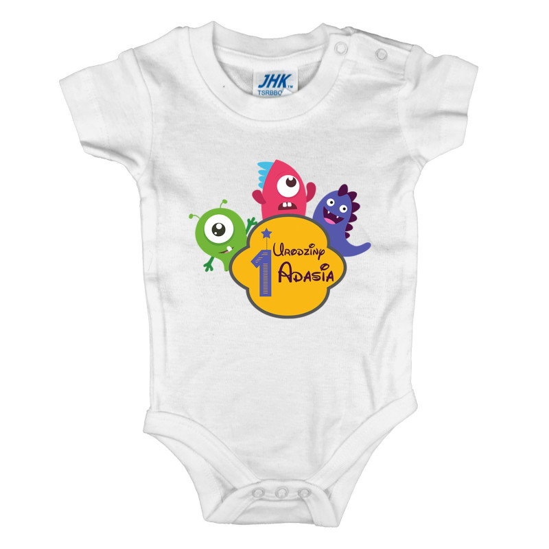 Body dla chłopca na roczek - krótki lub długi rękaw - wzór potworki - personalizacja.