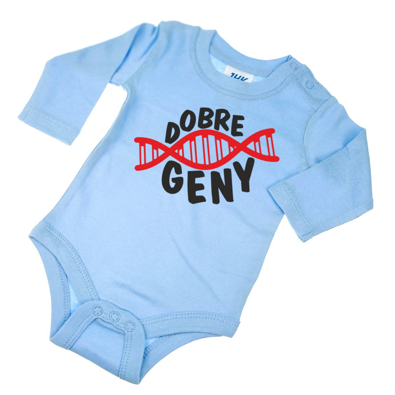 Super body dla maluszka z grafiką "Dobre geny". To doskonały pomysł na zabawny i zaskakujący prezent dla szkraba. Sprawi rodzicom wiele radości i będzie często noszone przez ich maluszka, wywołując uśmiech na wielu twarzach.