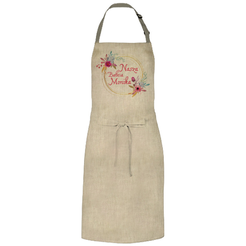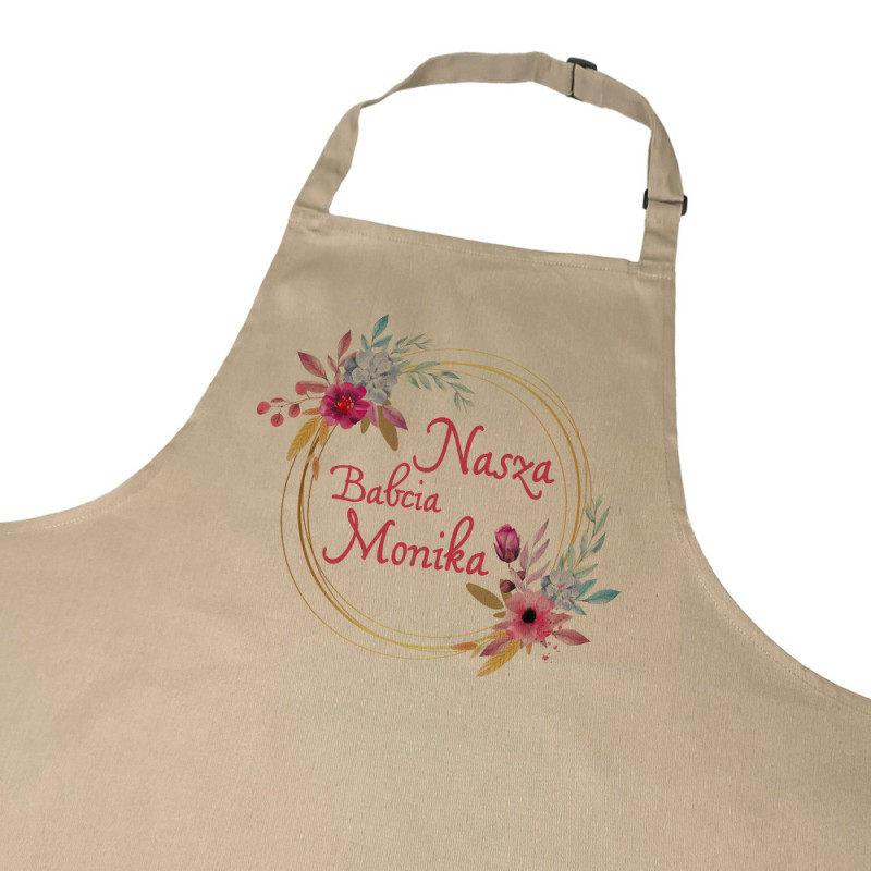 Fartuch dla babci kucharki lub lubiącej grillowanie. Będzie świetnym pomysłem na prezent z okazji dnia babci, a także bez okazji, aby wywołać uśmiech na twarzy jednej z ważniejszych dla nas osób. Fartuch jest bardzo porządnie wykonany z grubego materiału, uchwyt na szyję jest regulowany klamerką, dzięki temu osoby o różnej posturze mogą go właściwie dopasować do swojej sylwetki.