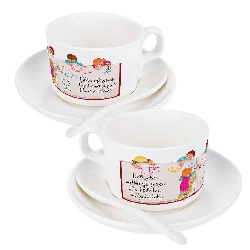 Filiżanki to idealny pomysł na prezent na różne okazje. Ten projekt świetnie sprawdzi się dla nauczyciela z okazji dnia edukacji narodowej lub na zakończenie roku. Elegancka grafika i wzniosły tekst wywoła uśmiech na twarzy każdego belfra.