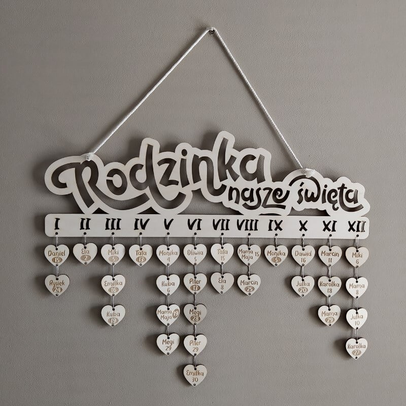 Serduszka do kalendarza - Urodziny mojej rodziny.