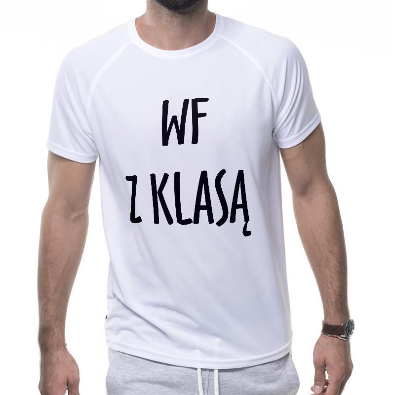 Koszulka dziecięca z napisem "Koszulka na WF" - bawełniana lub oddychająca.