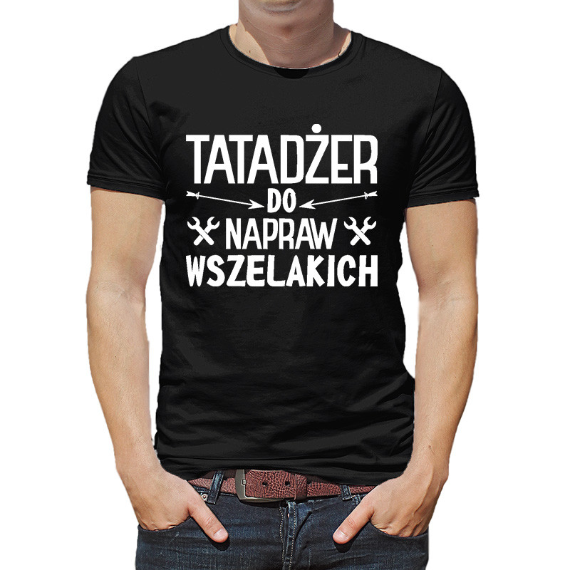 Koszulka unisex z napisem "Tatadżer do napraw wszelakich".