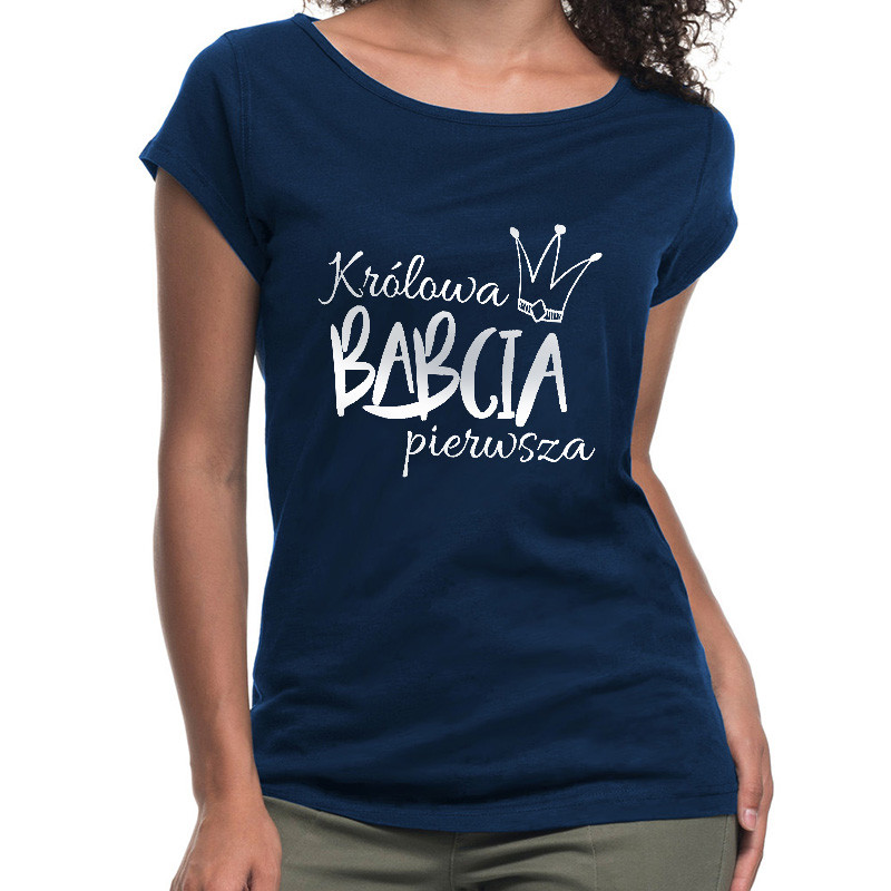 Koszulka damska specjalnie na dzień babci "Królowa Babcia pierwsza" - modny fason, nietoperz - idealna na urodziny oraz na inne okazje.
