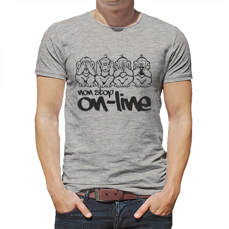 Idealna na prezent na dzień chłopaka, dla dziewczyny, urodziny, święta i inne okazje. Śmieszna grafika 4 małpek rozbawi każdego do łez - małpki mają przesłanie: nie widzi, nie słyszy, nie mówi, a ostatnio dołączyła nowa małpka non stop online. Grafika świetnie oddaje postępowanie ludzi w dzisiejszym świecie komórek. Modna, a przy tym bardzo uniwersalna koszulka z motywem znanych małp, symbolizujących niepełnosprawności to ciekawy pomysł na upominek dla bliskiej osoby, albo gadżet, który warto mieć w swojej szafie. Wysokiej jakości nadruk przedstawia trzy charakterystyczne małpy – niewidzącą, niesłyszącą i niemowę. W połączeniu z czwartą małpką, która wpatruje się w wyświetlacz telefonu i napisem „Non stop on-line” świetnie nawiązują do współczesnego sfokusowania na świat wirtualny.
