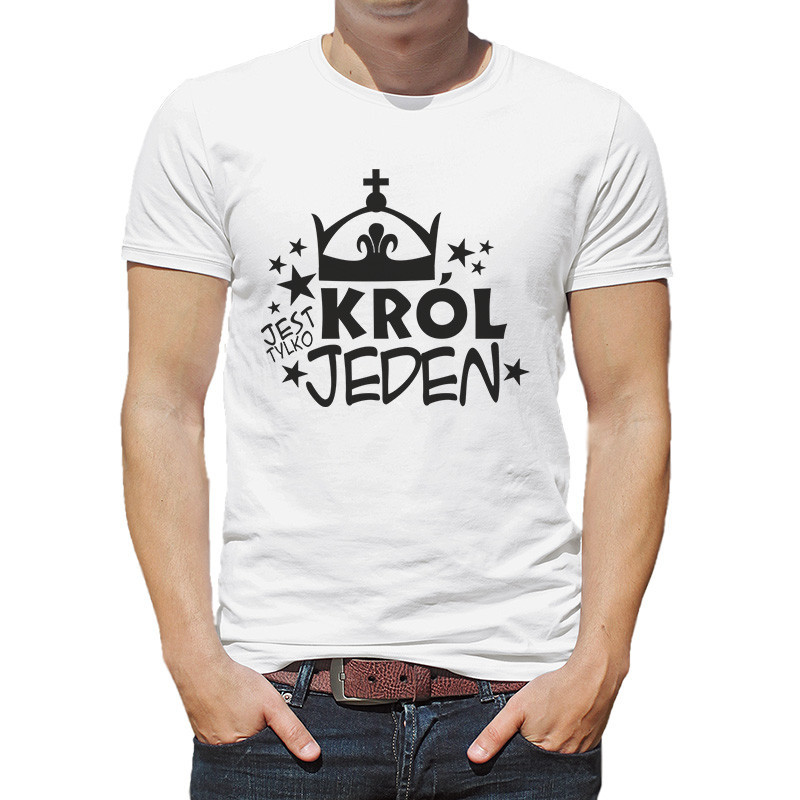 Śmieszna koszulka z napisem Król jest tylko jeden będzie wspaniałym prezentem. Idealna na urodziny, święta i inne okazje. Modna i bardzo uniwersalna koszulka, to ciekawy pomysł na podarunek dla bliskiej osoby, albo gadżet, który warto mieć w swojej szafie.