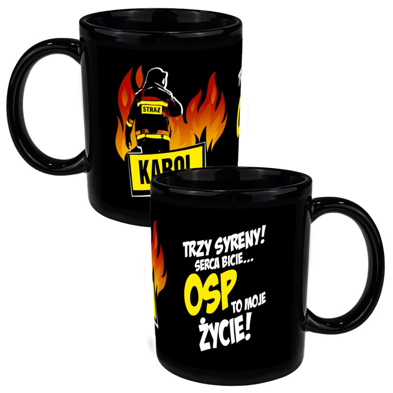 Ta oferta dotyczy kubka czarnego z nadrukiem sublimacyjnym. Taki kubek to oryginalny niepowtarzalny prezent dla wspaniałego strażaka, świetna pamiątka i fajny upominek, który na pewno przez długi czas będzie używany przez obdarowaną nim osobę.