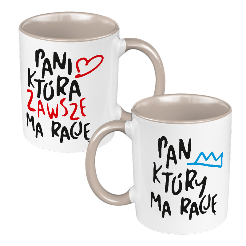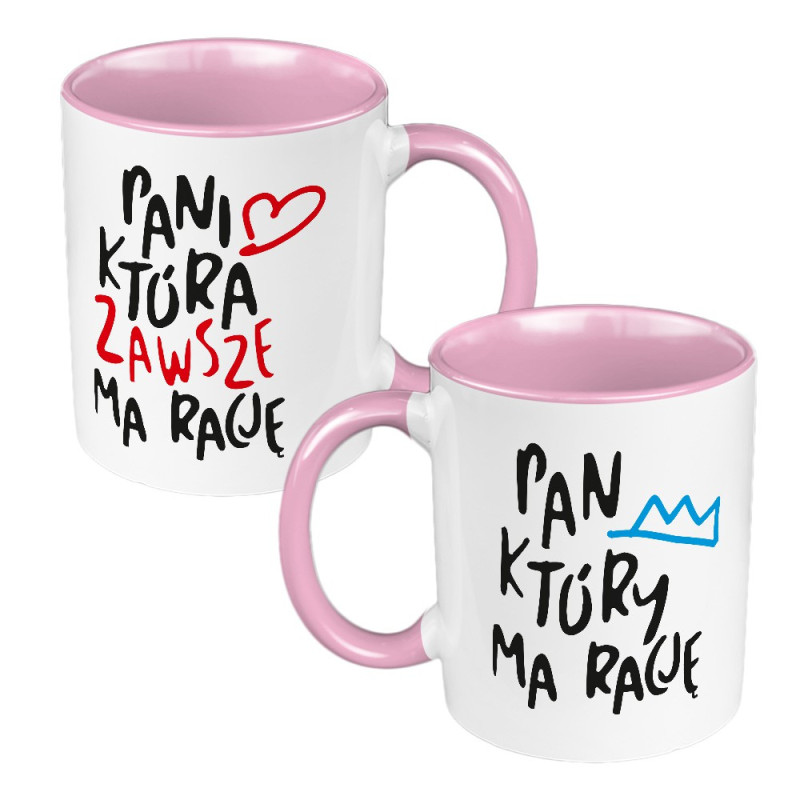 Kubek perłowy (metalic) różowy z nadrukiem (sublimacja).
