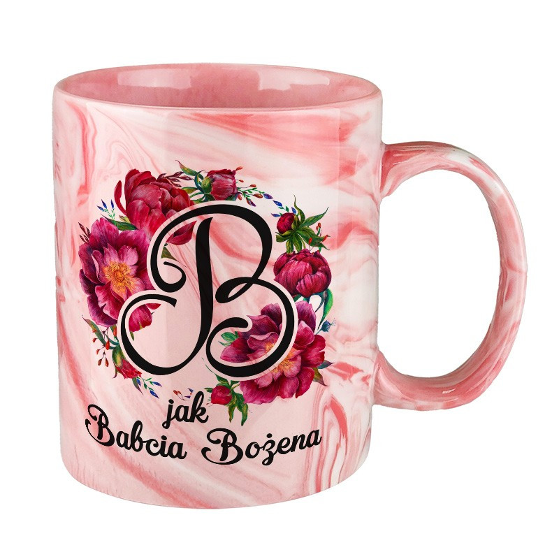 Kubek różowy marmurek specjalnie dla babci- B jak Babcia.
