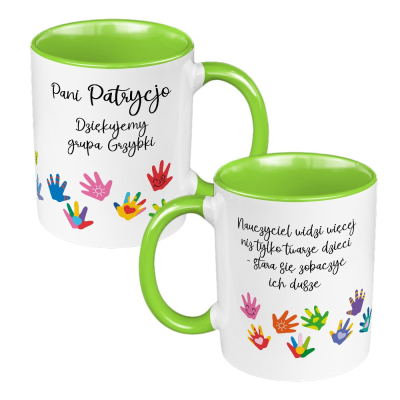 Kubek 330 ml kolorowy dla Nauczycielki Przedszkolnej- personalizowany z imieniem-"Łapki".