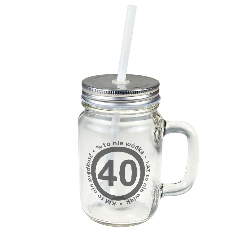Kubek słoik "Prędkość, wódka, wiek" z otworem na słomkę - prezent na urodziny- podaj wiek.