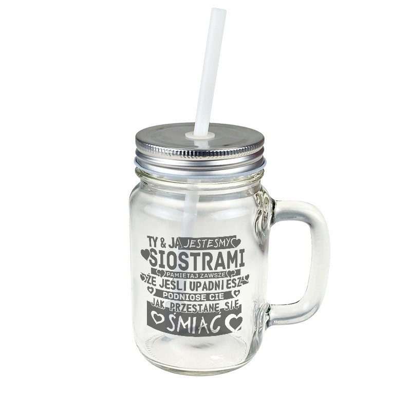 Kubek słoik "Ty i Ja jesteśmy siostrami"- prezent dla siostry lub najlepszej przyjaciółki.
