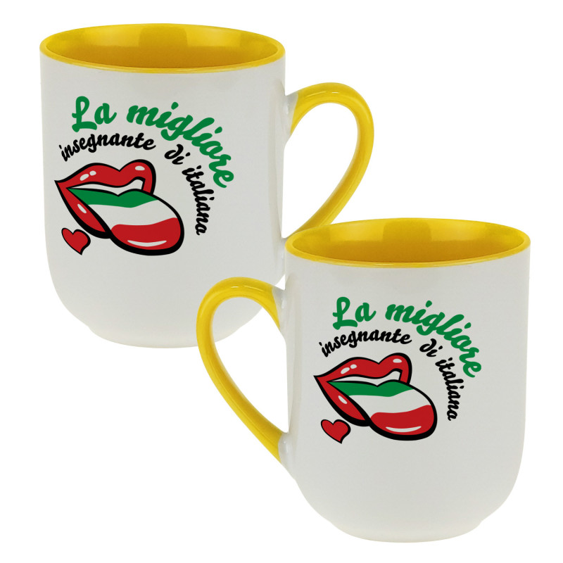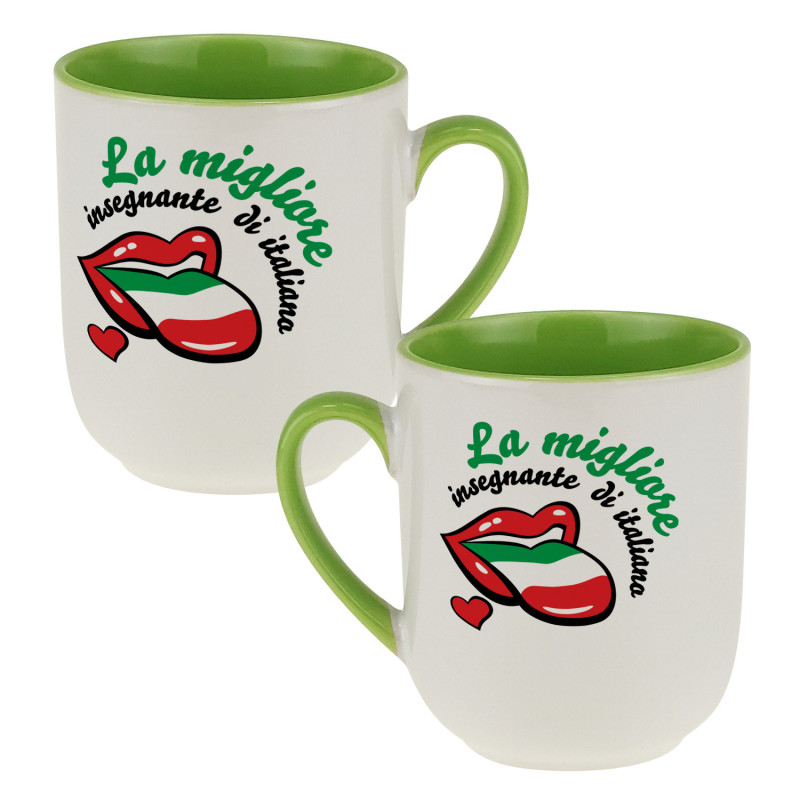 Kubek z łyżeczką dla nauczycielki angielskiego- grafika z językiem.