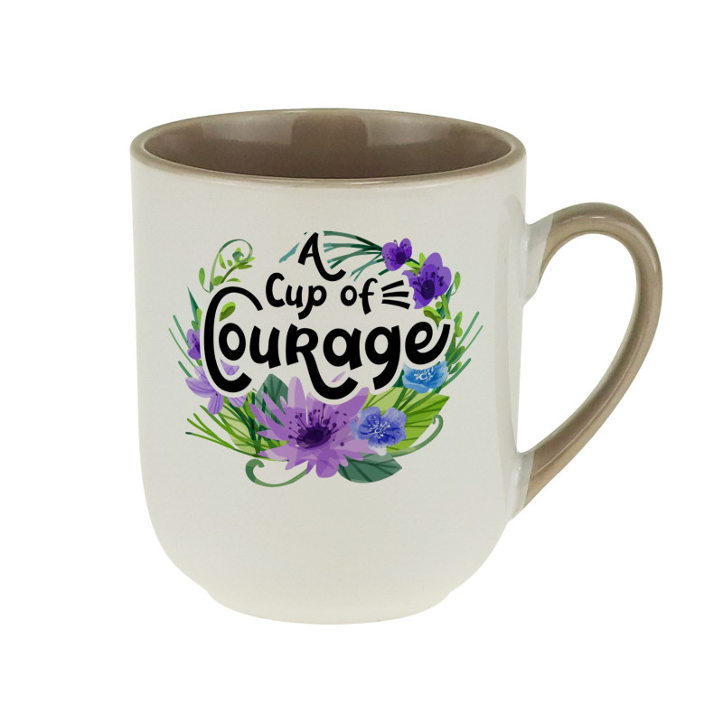 Kubek dla mamy, babci, koleżanki, dziewczyny z uroczą grafiką kwiatów i pięknym stwierdzeniem A Cup of Courage.