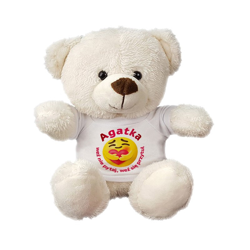 Maskotka miś, mięciutki z napisem " Weź nie pytaj, weź się przytul " - 18 cm -na prezent- biały lub brązowy.