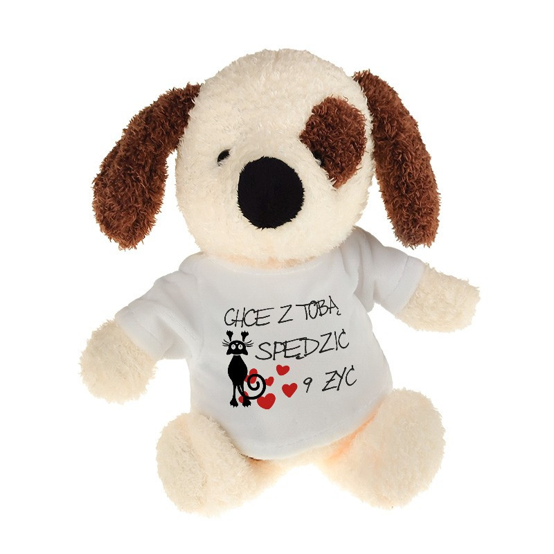 Piesek z grafiką "9 żyć"- 22cm.