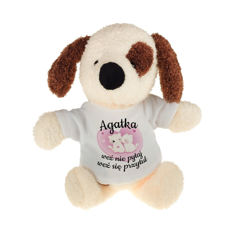 Piesek z grafiką "Weź nie pytaj, weź się przytul"- 22cm.