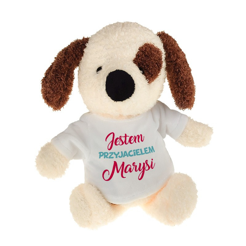 Piesek dla dziecka z grafiką "Przyjaciel"- 22cm.