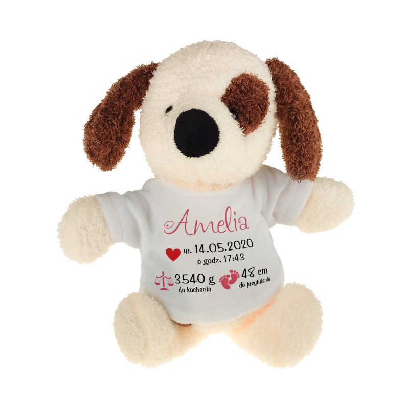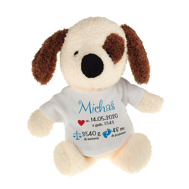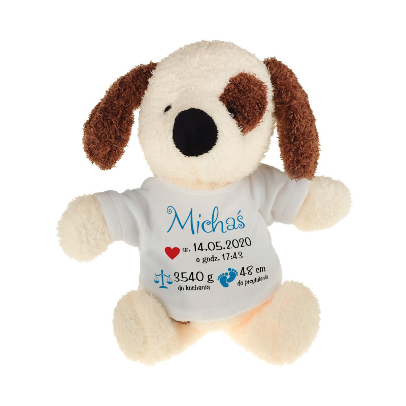Piesek dla dziecka z metryczką- świetny prezent z okazji narodzin- 22cm.