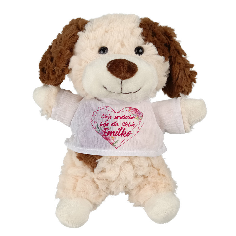 Puszysty piesek z grafiką "Moje serce bije tylko do Ciebie + imię"- 18cm.