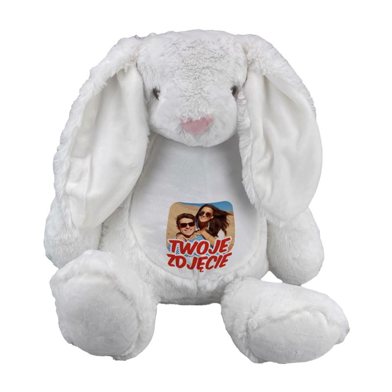 Kremowy królik z wyciąganym brzuszkiem oraz z Twoim zdjęciem tekstem czy grafiką.