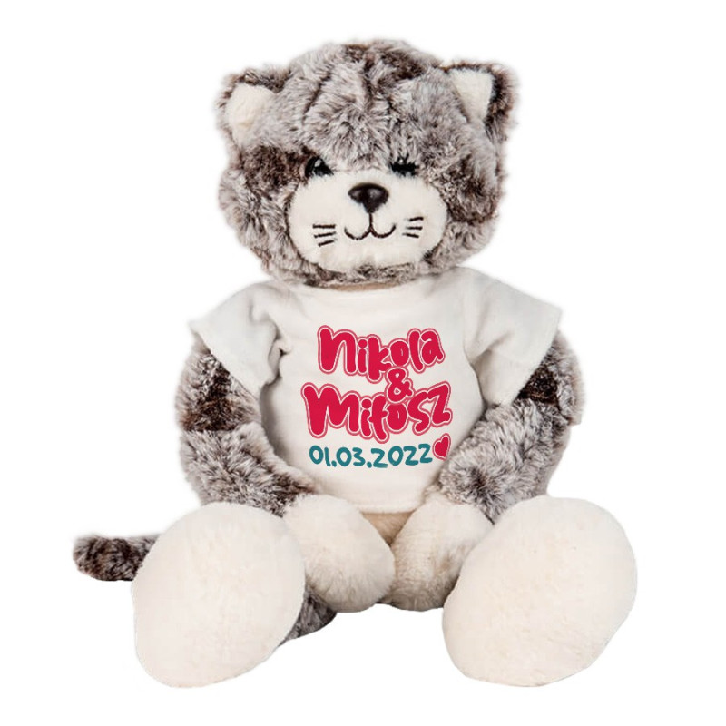 Pluszowy kotek na Walentynki - z imionami oraz ważną datą dla zakochanych.
