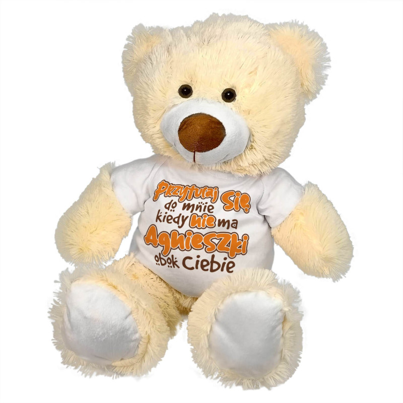 Maskotka miś duży dla dziewczyny "Przytulaj się do mnie, kiedy Kuby nie ma obok Ciebie" - ok. 55-60cm.