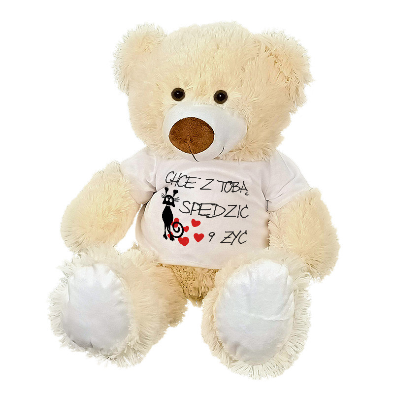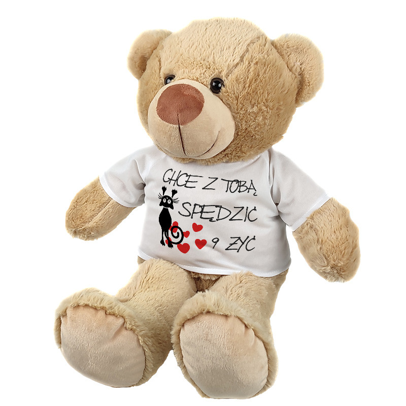 Maskotka miś duży z grafiką "Chcę z Tobą spędzić 9 żyć" - ok. 55-60cm.