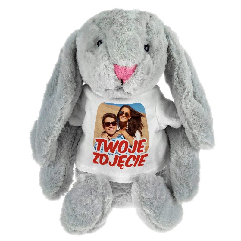 Królik z Twoim zdjęciem, tekstem, grafiką - maskotka ok. 39 cm - świetny prezent..