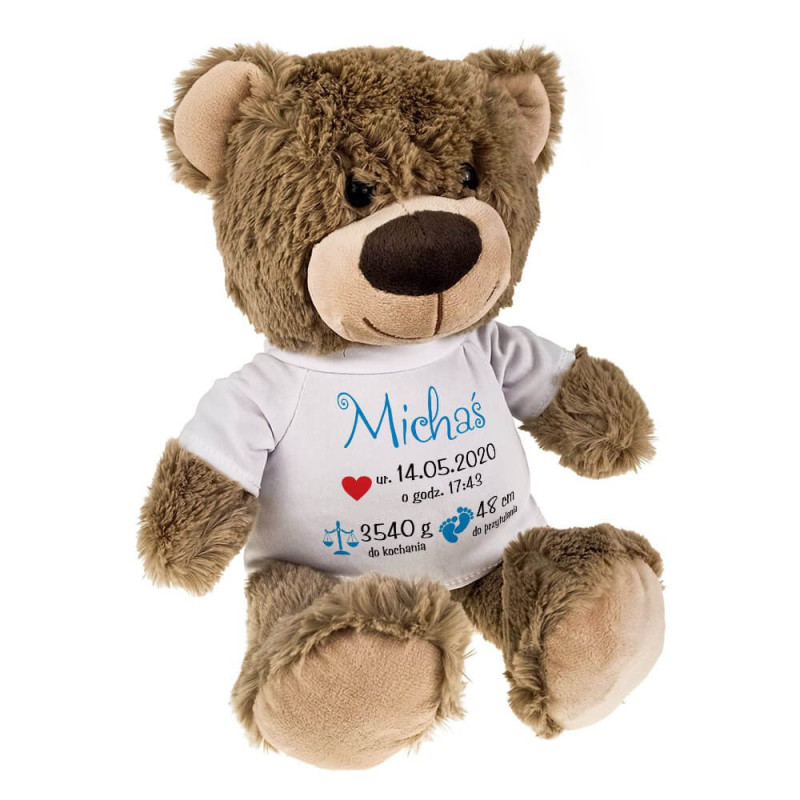 Miś będzie fajnym prezentem dla naszych milusińskich lub ich rodziców z okazji narodzin. Chyba wszystkie małe dzieci lubią pluszowe maskotki, a imię będzie dodatkowym atutem. Maluch na pewno z wielką ochotą będzie tulić swojego misia do snu.