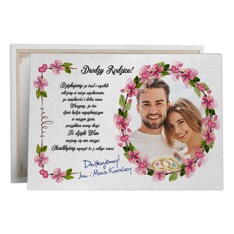 Obraz na płótnie canvas dla Rodziców od Młodej Pary ze zdjęciem 30 x 40cm.