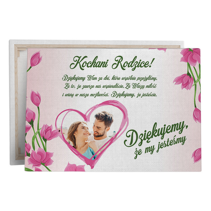 Obraz na płótnie canvas Podziękowania dla Rodziców ze zdjęciem, piękny prezent 30 x 40cm.