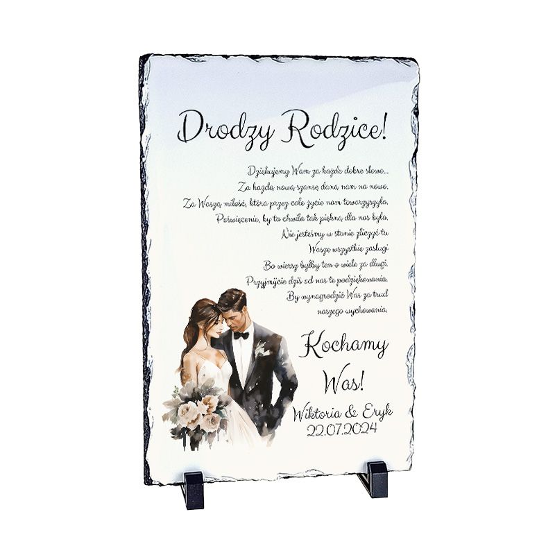 Foto granit (płyta granitowa) z personalizacją imionami oraz datą ślubu - specjalne podziękowania dla rodziców, 20 x 30cm!!!