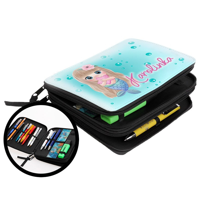 Duży piórnik dwukomorowy dla pierwszoklasisty - Syrenka - zmień imię.