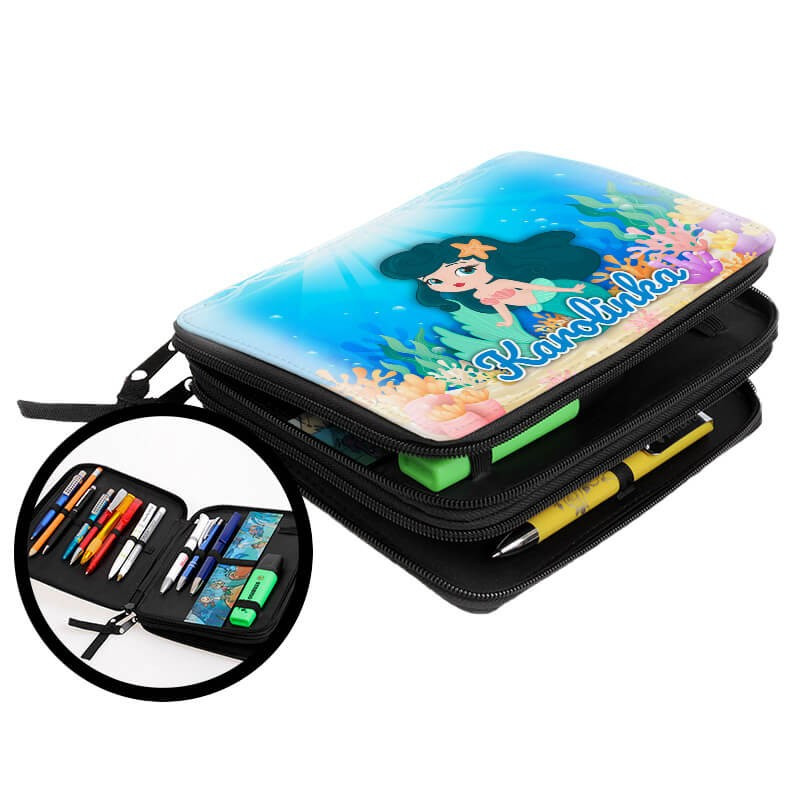 Duży piórnik dwukomorowy dla pierwszoklasisty - Mała Syrenka - zmień imię.