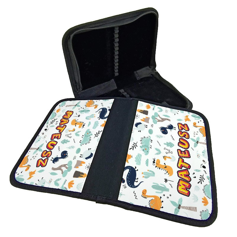 Piórnik dwustronny "Dinozaury" oraz imieniem Twojego dziecka.
