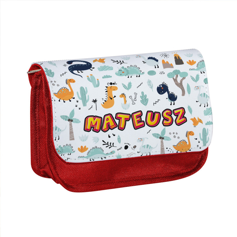 Piórnik personalizowany z imieniem dziecka z grafiką "Dinozaury"-różne wzory.