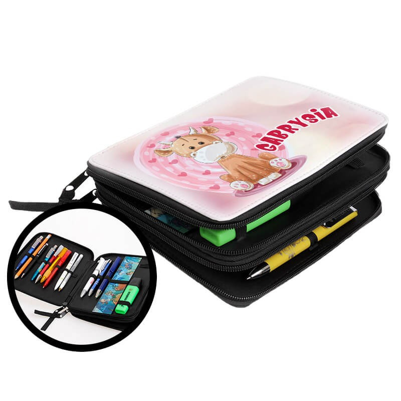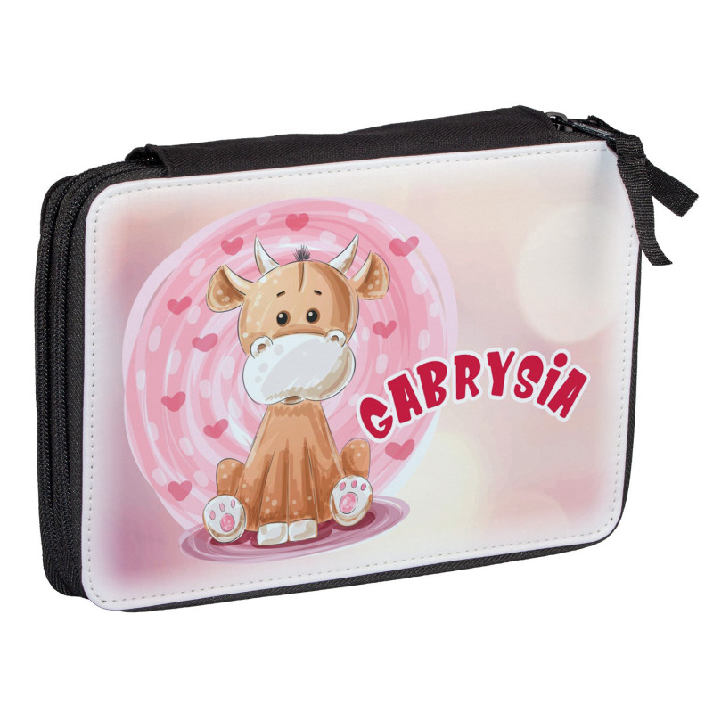 Duży piórnik z grafiką Krówka oraz z imieniem Twojego dziecka.
