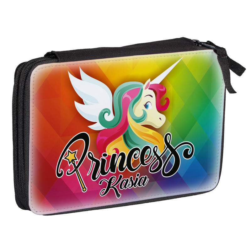 Duży piórnik dwukomorowy dla pierwszoklasisty - Jednorożec 1 (unicorn) - zmień imię.