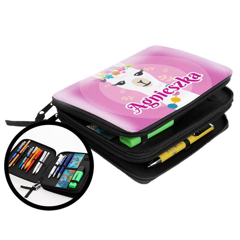 Duży piórnik z grafiką Lamy oraz z imieniem Twojego dziecka.