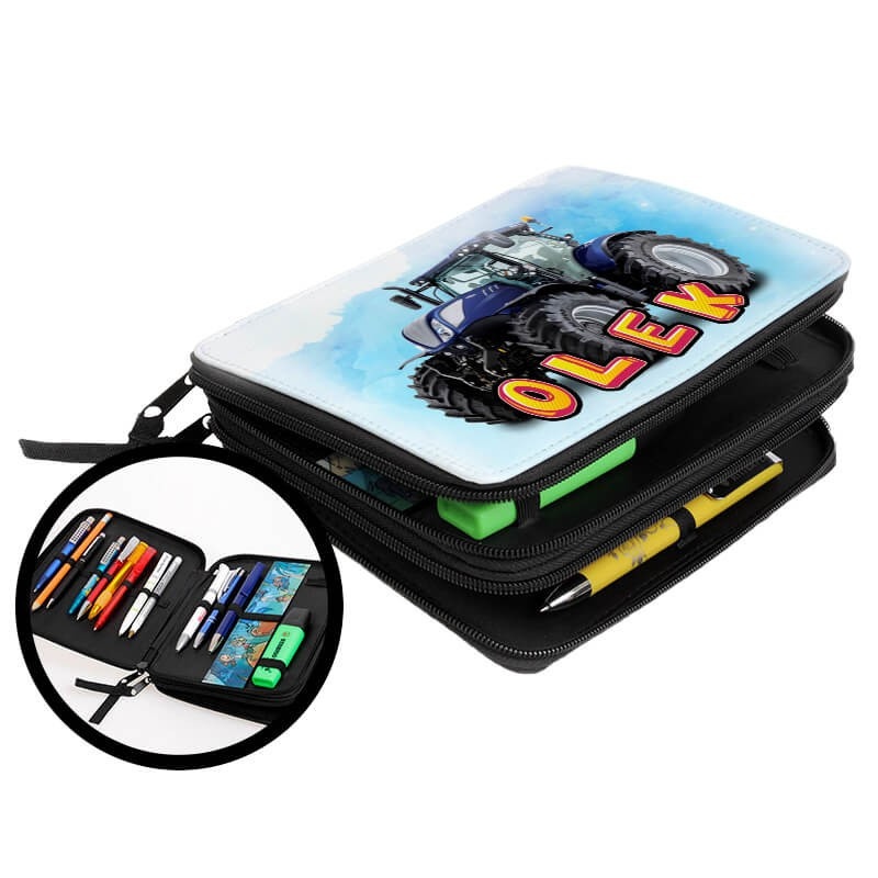 Duży piórnik z grafiką traktora oraz z imieniem Twojego dziecka.