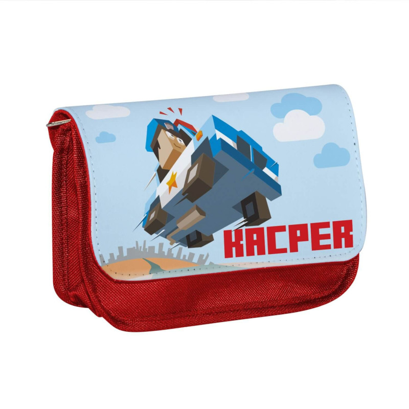 Piórnik personalizowany z imieniem dziecka z grafiką Minecraft policja.