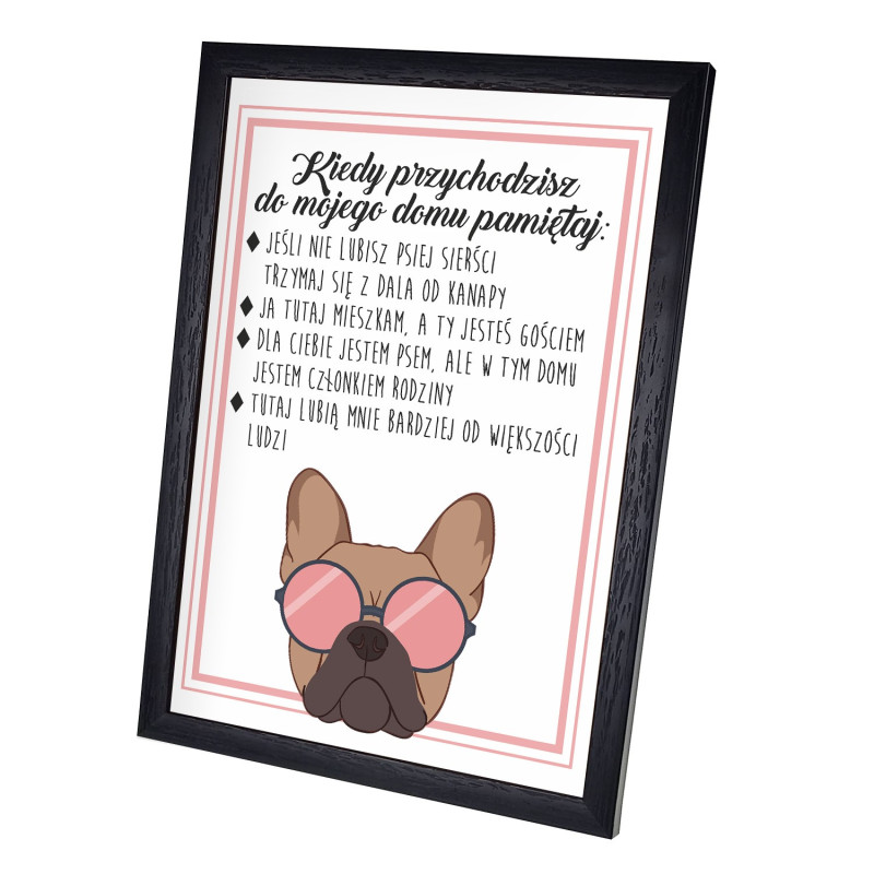 Plakat w ramie lub bez ramy - "Zasady odwiedzin w domu, którym mieszka pies".