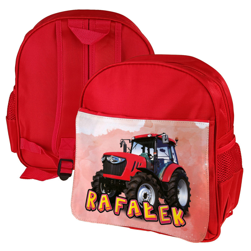 Plecak dla przedszkolaka czerwony- Traktor z imieniem.
