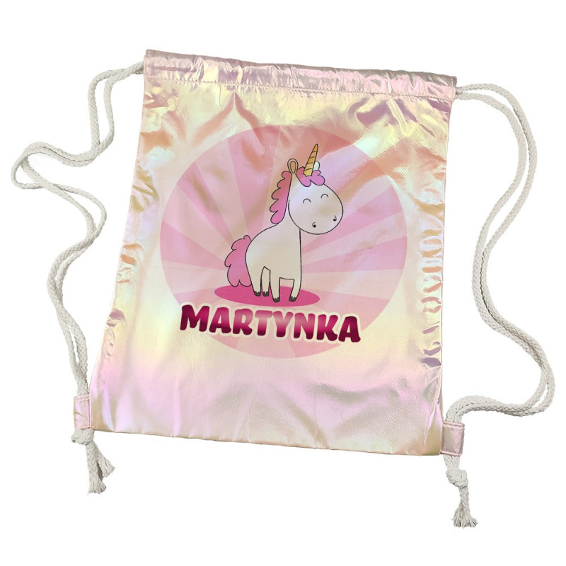 Worko-plecak holograficzny różowy z lamą oraz imieniem.