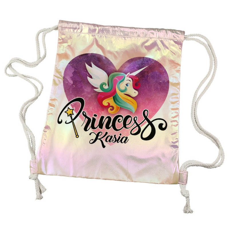 Worko-plecak holograficzny różowy z imieniem- Princess.