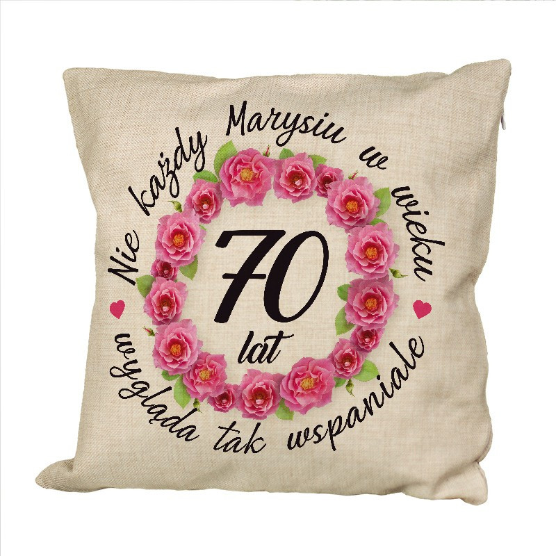 Urocza poduszka z piękną grafiką dla bliskiej Ci osoby z okazji 70 urodzin. Jeśli chcesz obdarować oryginalnym prezentem, to ta poduszka będzie idealnym upominkiem z tej właśnie okazji. Idealnie wpasuje się w tradycyjne oraz nowoczesne wnętrza. Podaruj fajny gift zamiast tradycyjnych kwiatów, nie kupisz takiej w sklepie. Dzień matki to wyjątkowy dzień, w którym chcemy wyrazić miłość i wdzięczność dla naszych mam, nasza poduszka będzie świetnym prezentem z okazji dnia matki i na długo pozostanie w jej pamięci.