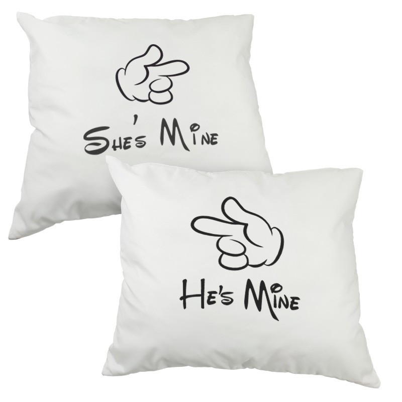 Zestaw poduszek dla pary "She's mine / He's mine" - 60 x 50cm- prezent z okazji ślubu.