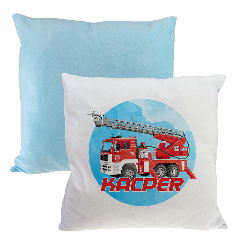 Pluszowa poduszka "Straż Pożarna" - personalizacja - podaj imię- niebieski tył.